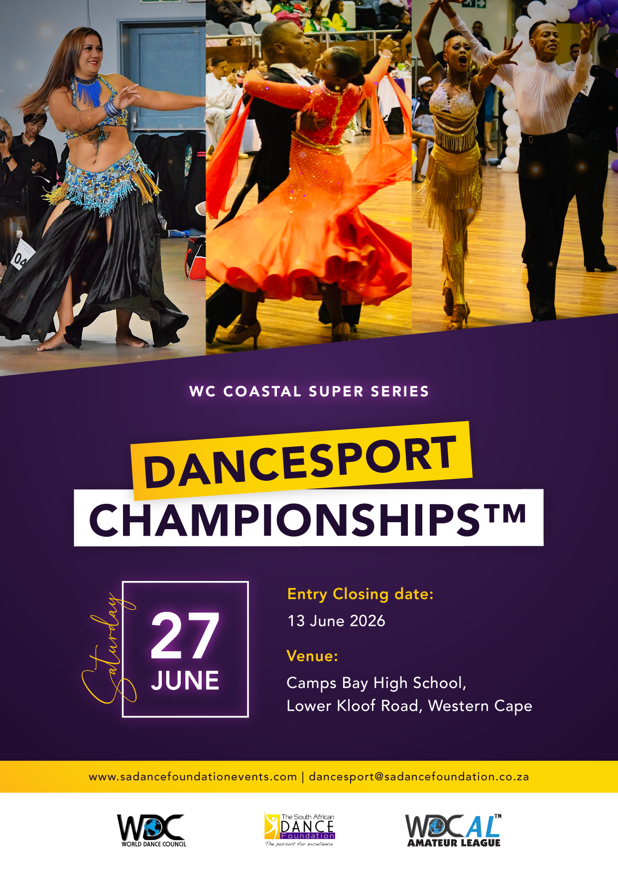 Join us on 27 June 2026 at Camps Bay High School in a stunning setting for the annual WC Coastal Super Series Dancesport Championships™, the ultimate build up to World Championships!